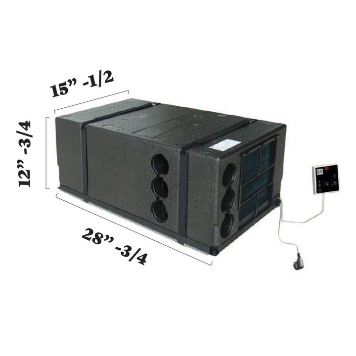 Explore the great open road with Pioneer's newest RV heat pump air conditioner package unit.  Intended for under-the-bench installations, this low-profile and highly durable package system will keep your motor vehicle at a cozy temperature all year round, and do so quietly. Easily attach three ducts to serve separate areas of the dwelling, with options to connect to the front or side of the system. Control the system using the wall-fixed thermostat, or from the comfort of your bed using the convenient handheld remote controller. With ultra-quiet performance, sleek design, and very low input power requirements, this rugged plug-in system will be one of your favorite companions on those long-haul journeys, day-in and day-out.
