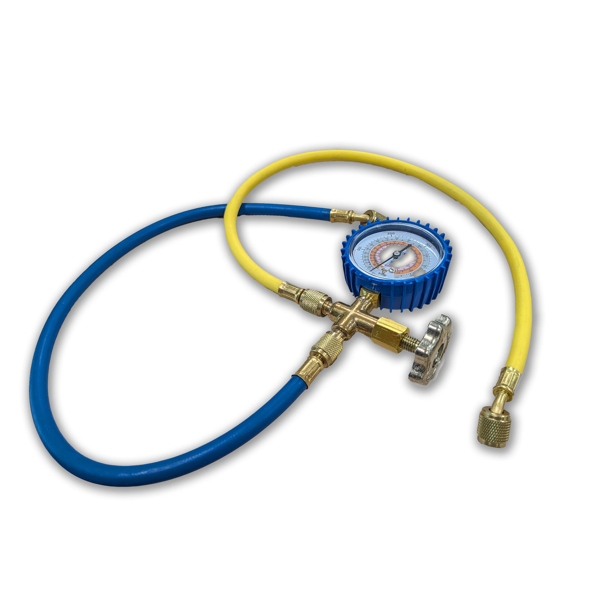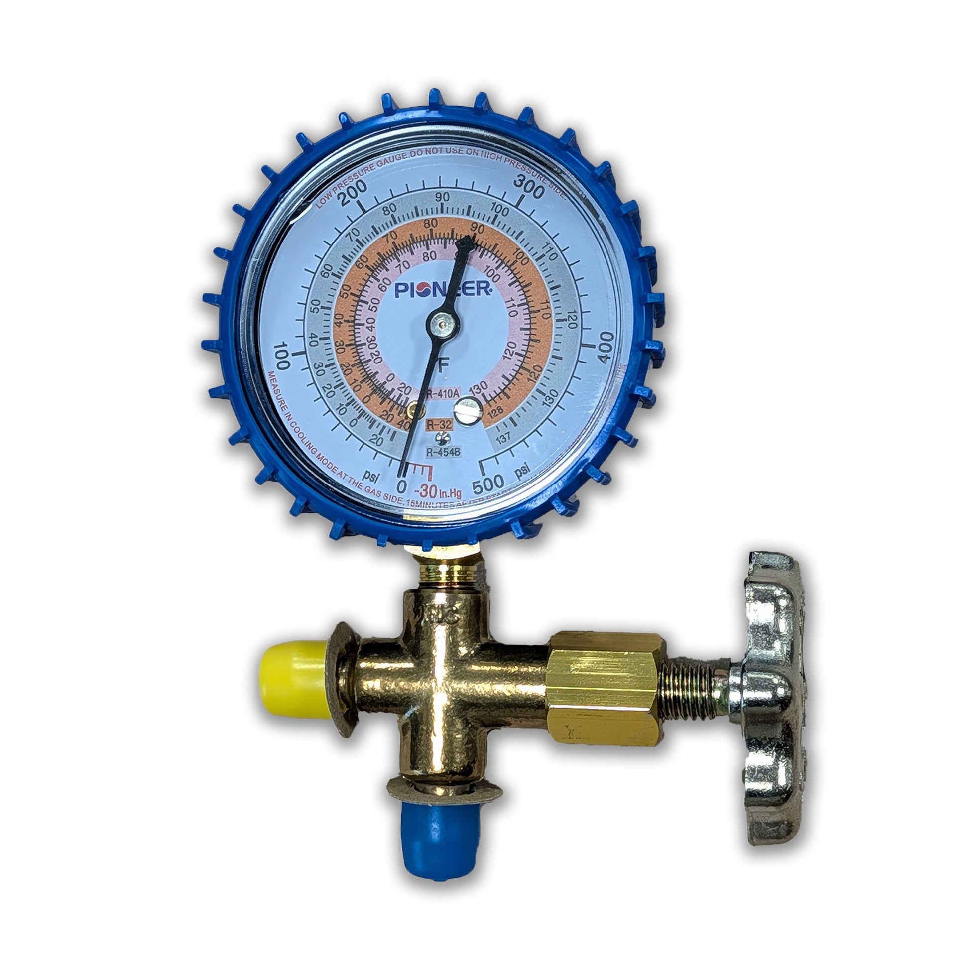 - Simple low side charging manifold contains R410a/R454N/R32 rated low side pressure gauge.