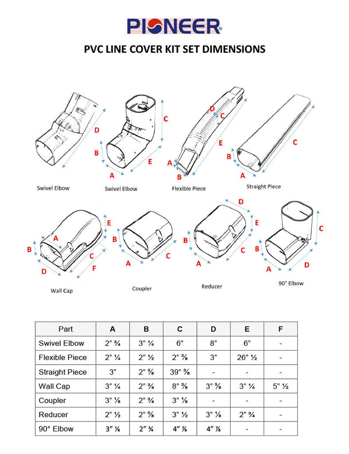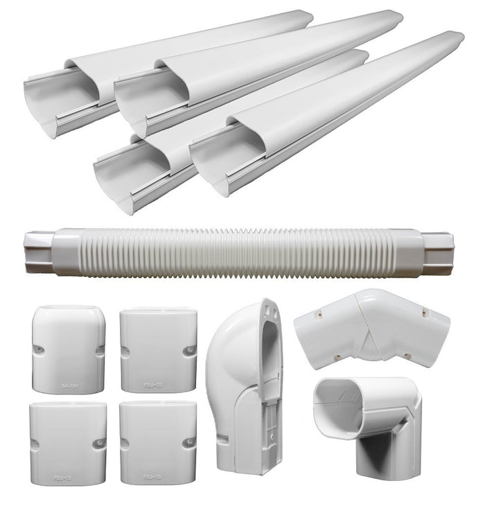Atractivo y duradero kit de cubierta de línea de PVC para embellecer su instalación. Suficiente material para cubrir 10~12 pies de longitud total de tubería de refrigerante expuesta. Que consiste en: