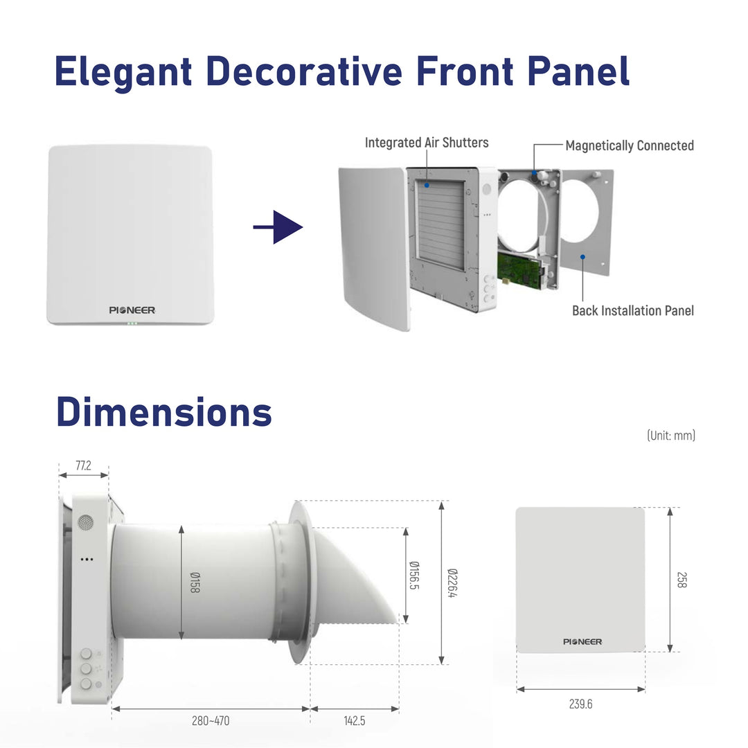 • Wall-Mounted with Variable Length Air Channel Duct to Suit Different Wall Thicknesses